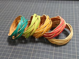 染めた革でブレスレット